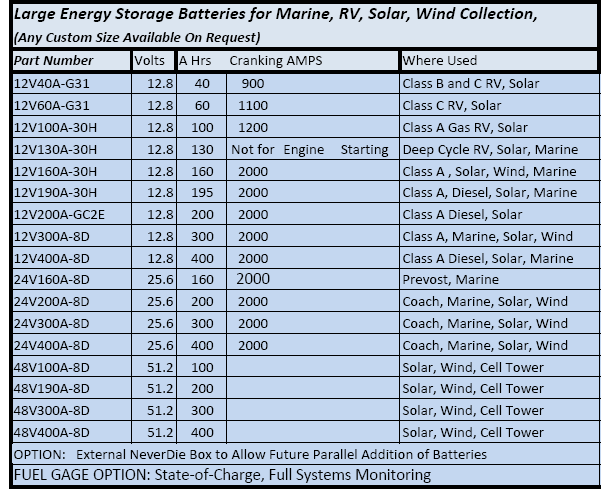Note: 1 Lithium ion AHr = 2 Lead Acid AHr